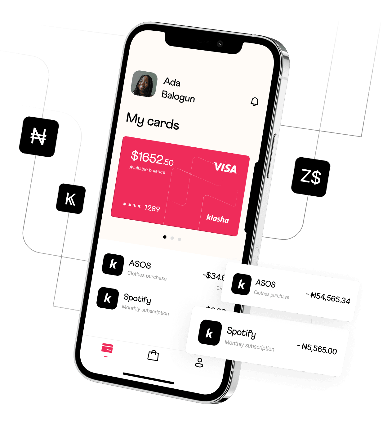 Make cross-border payments online using the Klasha virtual dollar card. Create virtual cards instantly, fund it with African currencies and get the dollar equivalent.