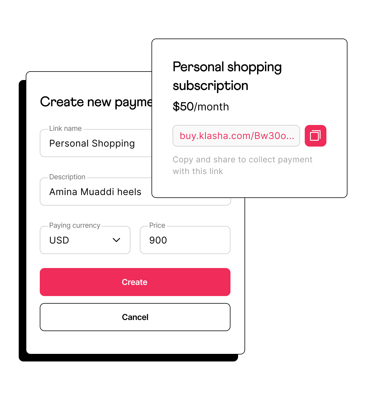 Create a link in a few clicks on your Klasha dashboard.